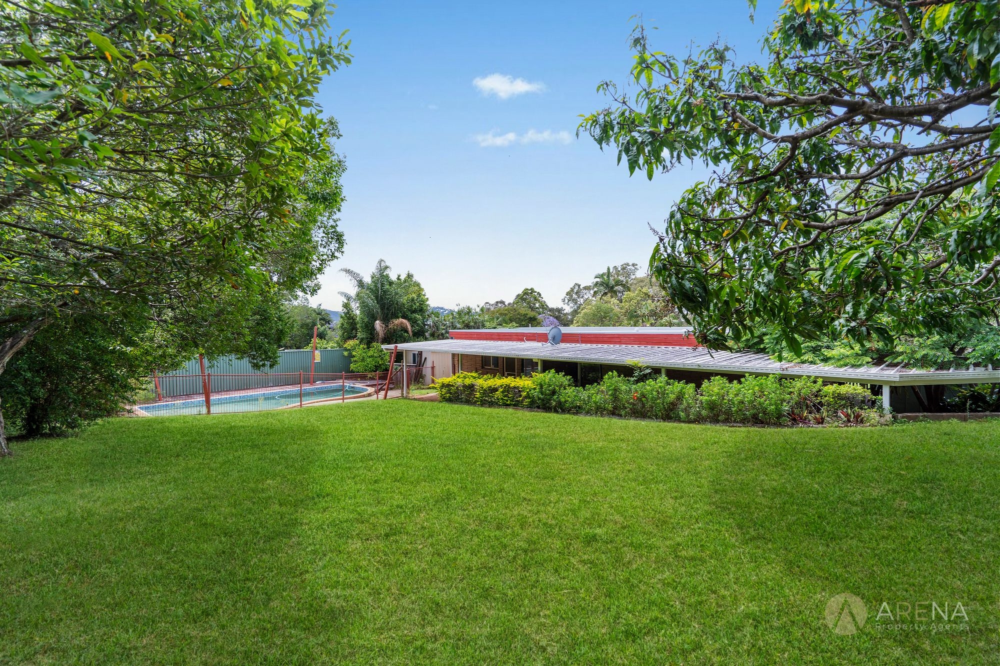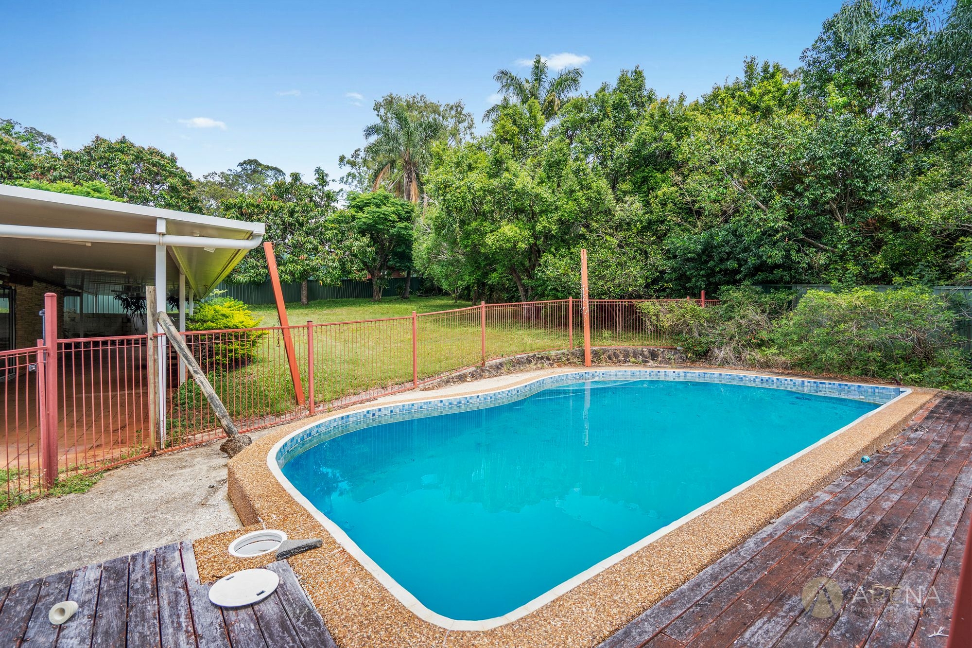 The home features four bedrooms, two bathrooms, and a large open-plan living area, created when the former outdoor space was enclosed under the new roofline. There’s also a spacious wrap-around patio, swimming pool, and a tall double carport ideal for a boat or caravan — all set against a peaceful, leafy backdrop.
